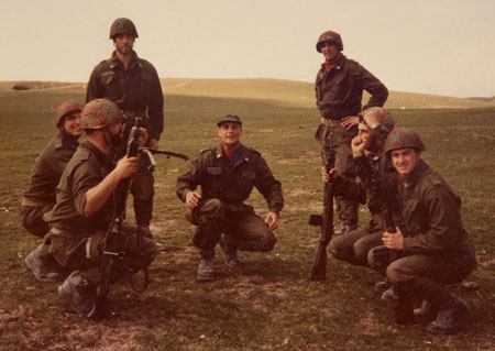 Scuola di Fanteria e Cavalleria AUC Cesano: in piedi a sinistra gianni Aristei, europeo di karate; a destra accosciato, Paolo Lepori, Comandante di plotone in 1^ Cp. al Terzo, oggi Ten. Col. dirigente del CFS.